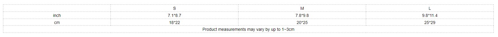 | inch | 7.1*8.7 | 7.8*9.8 | 9.8*11.4 |