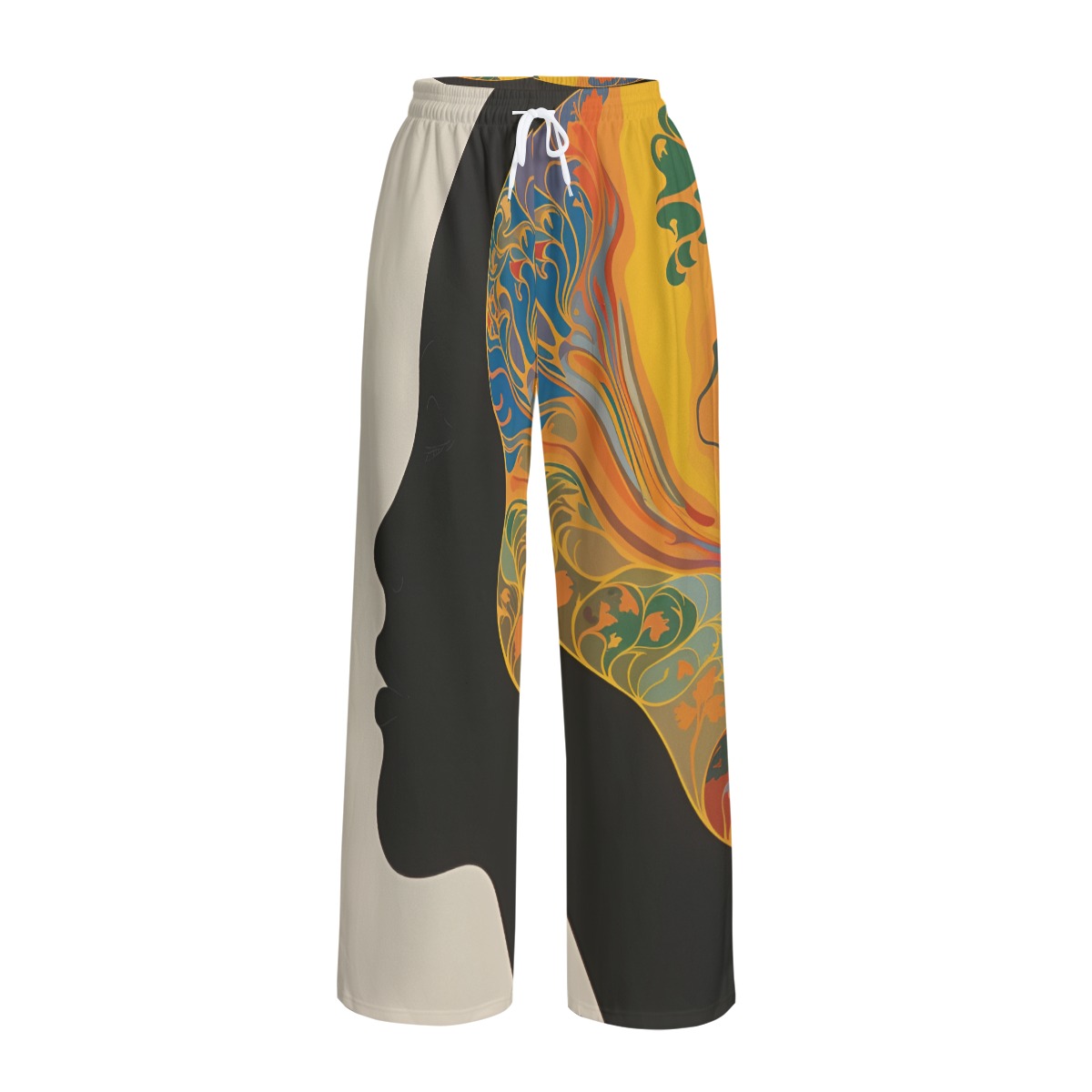 A flexible elastic waistband with an adjustable drawstring allows for a customized fit, making them easy to wear and style. The regular fit and wide-leg cut balance structure and movement, while the abstract print adds a modern, artistic edge. Ideal for relaxed styling with a clean, contemporary finish.