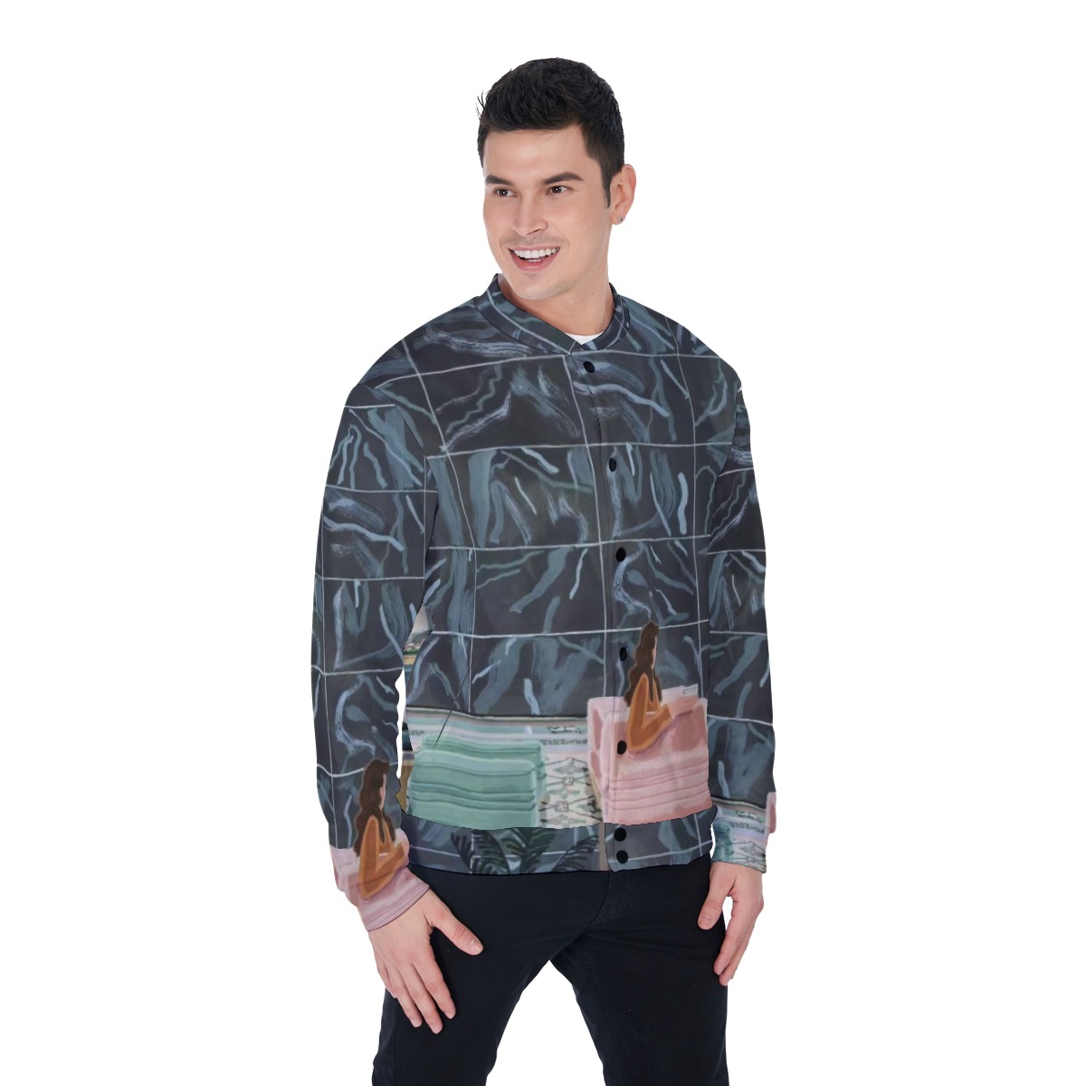 Art-inspired varsity jacket for men