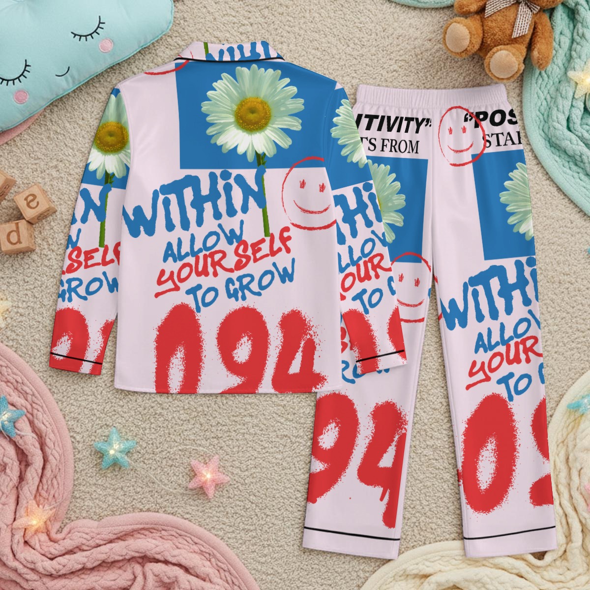Let creativity shine at bedtime with the Grow Within Kids PJ Set. Designed with bold graffiti-style artwork and uplifting words, this pajama set celebrates self-expression, confidence, and imagination. Crafted from soft, lightweight fabric, it keeps little ones comfortable all night while offering breathable, all-season wear. Perfect for sleep, lounging, or cozy mornings at home.